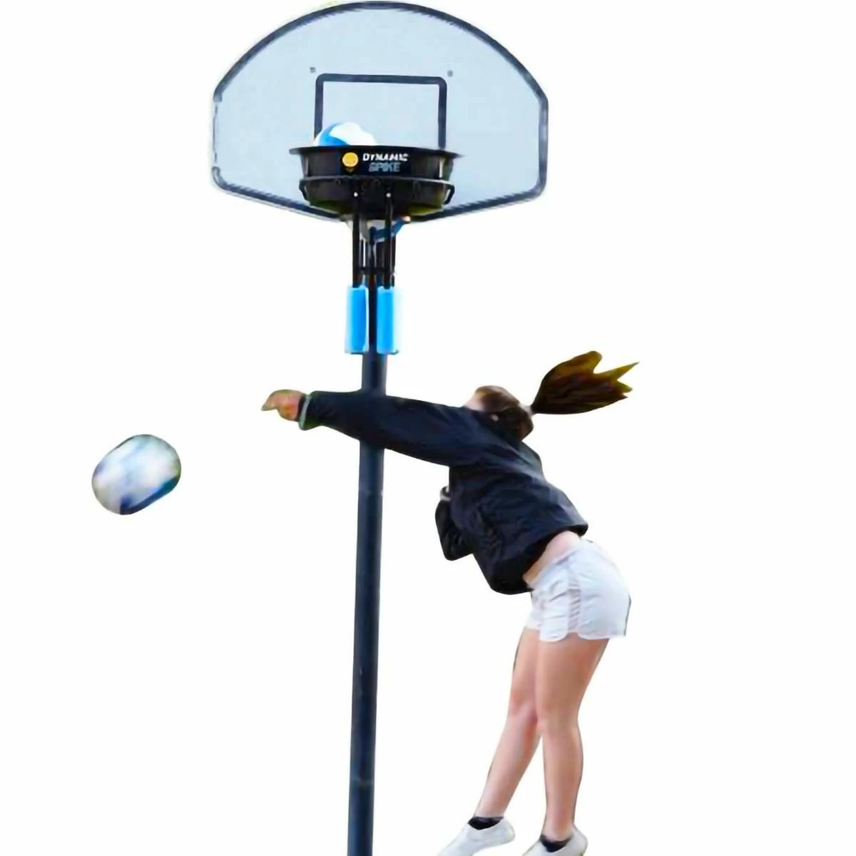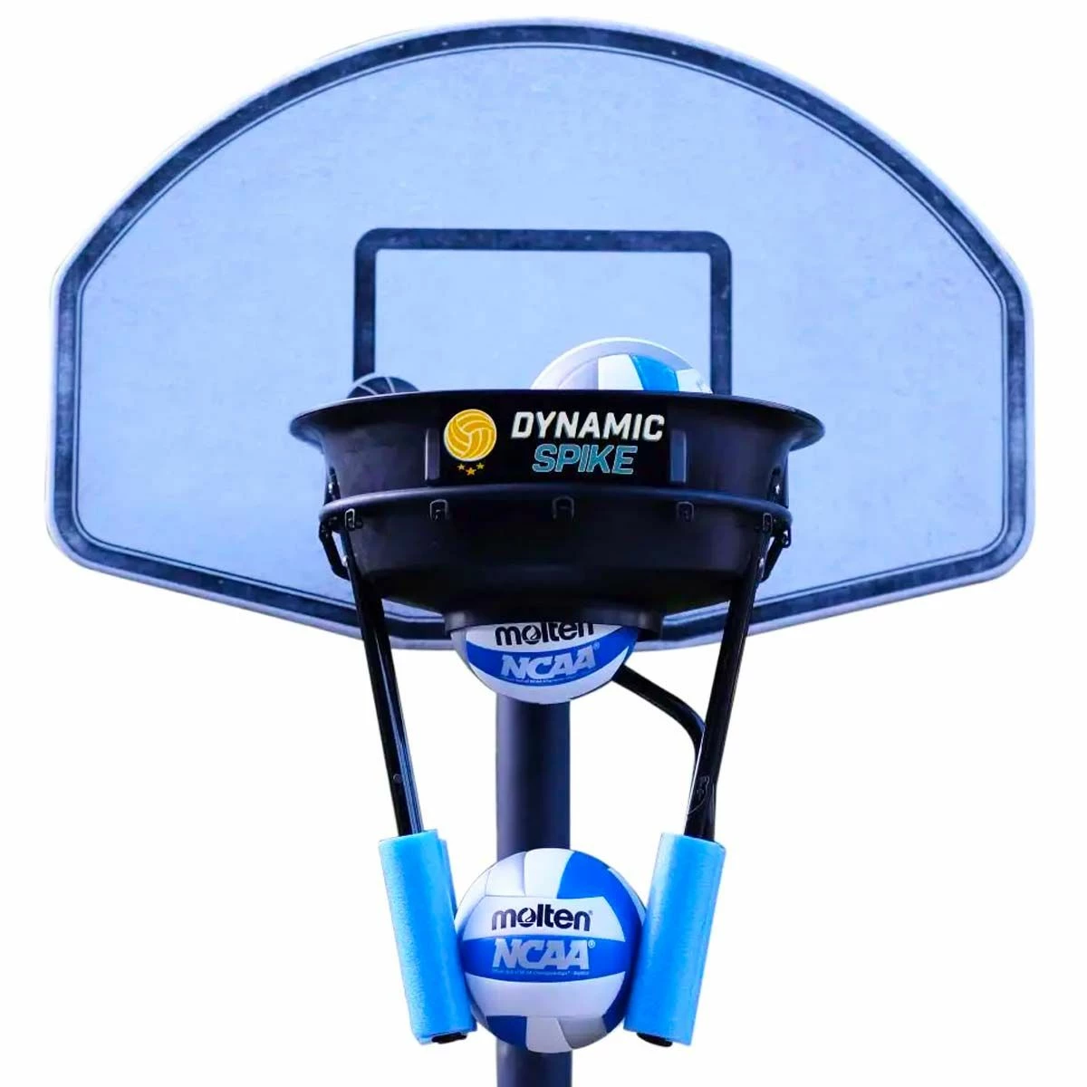 The DynamicSpike volleyball trainer is a lightweight, portable hitting trainer that helps players of all ages improve their volleyball skills and build confidence spiking the ball. Holding 3 volleyballs at a time, the trainer has an auto-delivery system that automatically reloads a ball into position once the previous ball has been hit. By holding the ball in a static position, the trainer is ideal for practicing footwork, timing, arm swing, and overall ball contact. This is the perfect volleyball training aid to improve a player’s digs, passes and sets. The trainer can be placed in the rim of any standard basketball hoop and allows for solo training or with teammates. Designed for indoor and outdoor use, the DynamicSpike trainer is made with safe and durable plastics including Seaboard HDPE, making it usable in any weather condition.