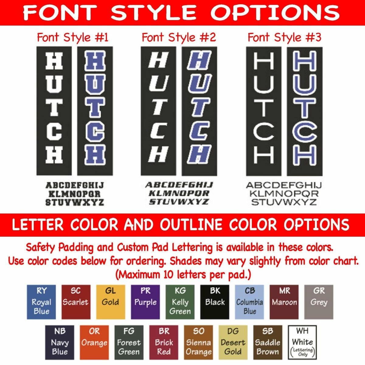 - 10 letter maximum per pad