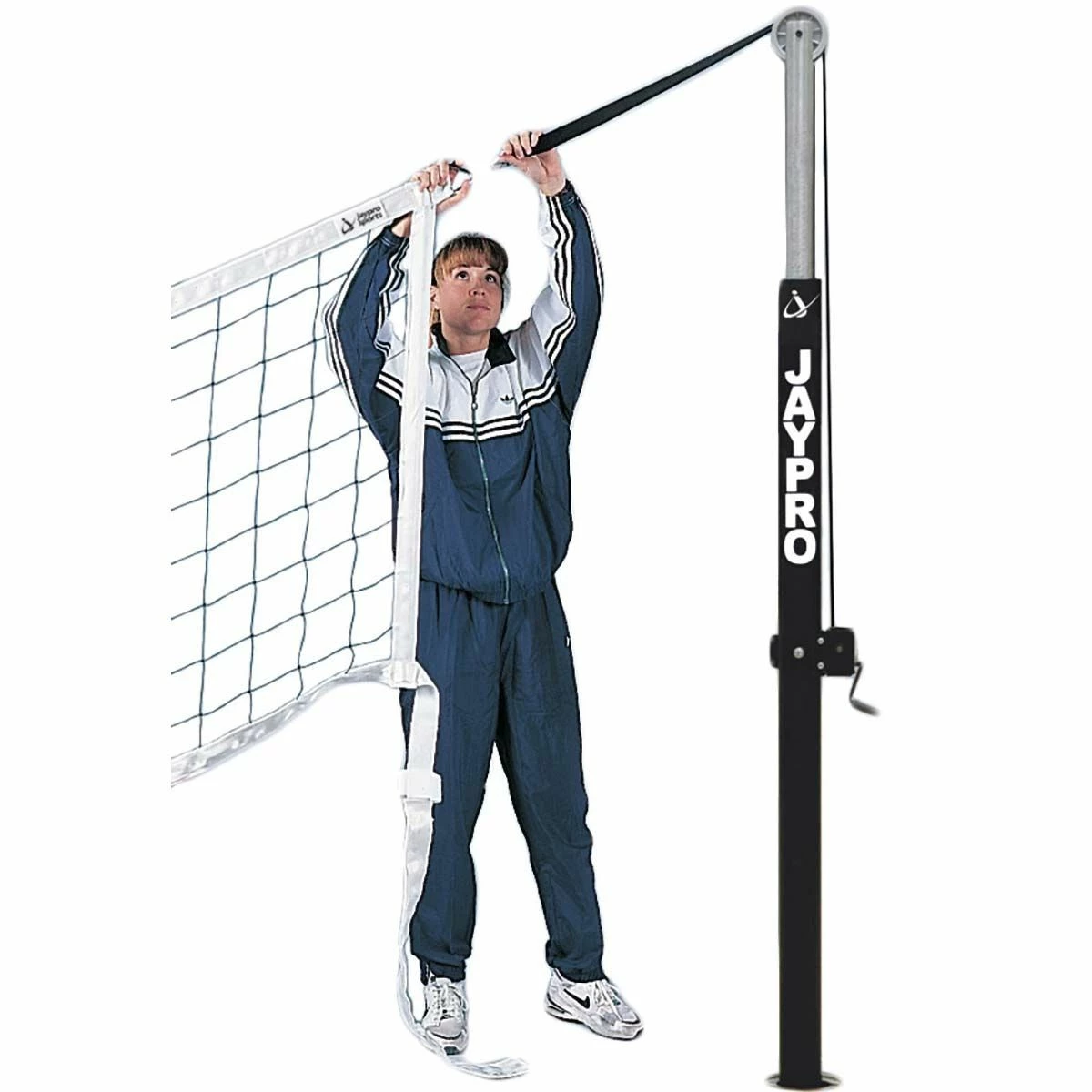 The Jaypro 3″ Hybrid Steel PVB-3000 volleyball net system is an affordable, high performance system designed for international, collegiate and high school play. The 3″ OD uprights feature a hybrid design with a steel bottom for strength and an aluminum top for reduced weight. The uprights are equipped with a 16 pin-stop height adjustment that ranges from 6’6″ to 8’2″ and accommodates men’s, women’s, junior men’s, and junior women’s net heights. The 3″ diameter uprights can be used with 3-1/2″ diameter floor sleeves via a separately sold adapter (adapter reduces 3-1/2″ to 3″). The heavier weight of the steel uprights makes the Hybrid Steel PVB-3000 best suited for programs that don’t need to break down the system often. The Hybrid Steel’s Flex Net is easy to set up and provides great net tension with very little flex for lively net play. The PVB-3000 ships complete with antennae and upright padding.