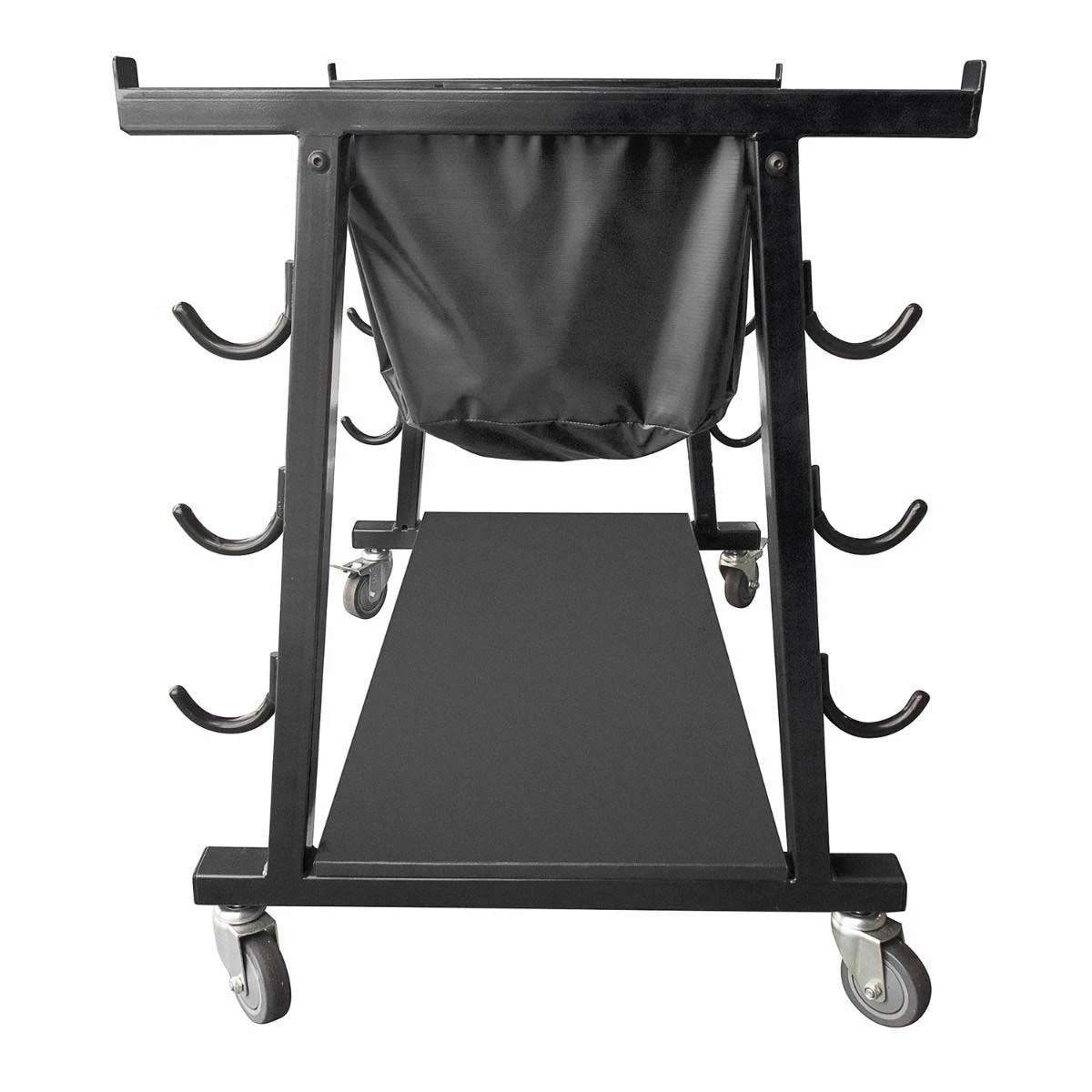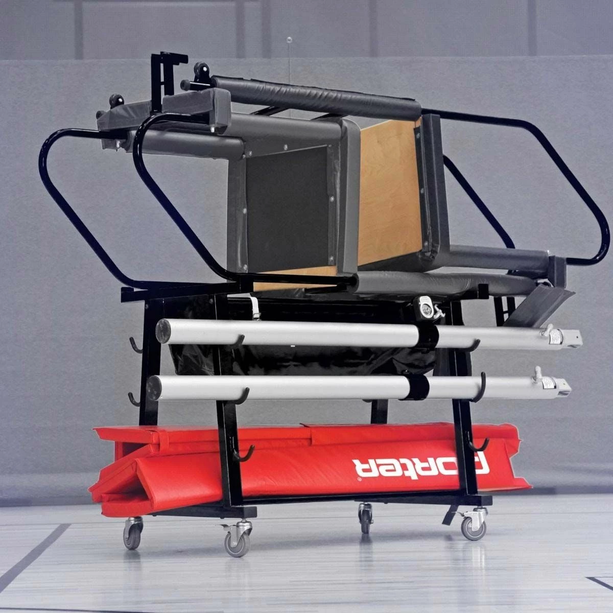 - Holds standards, protective pads, nets, judges stands (2), & balls for three full competition courts