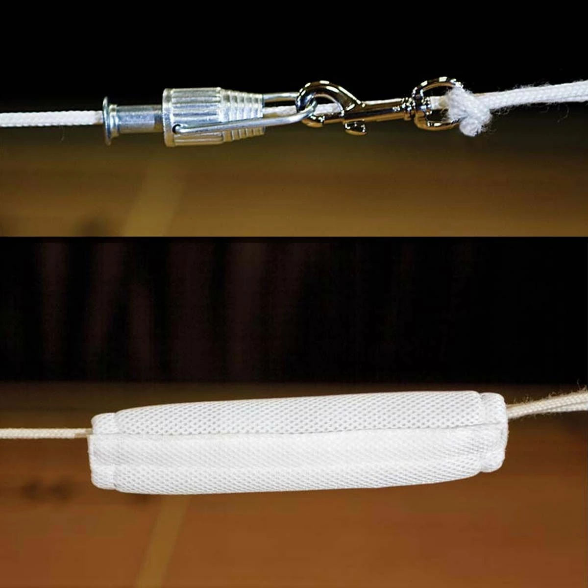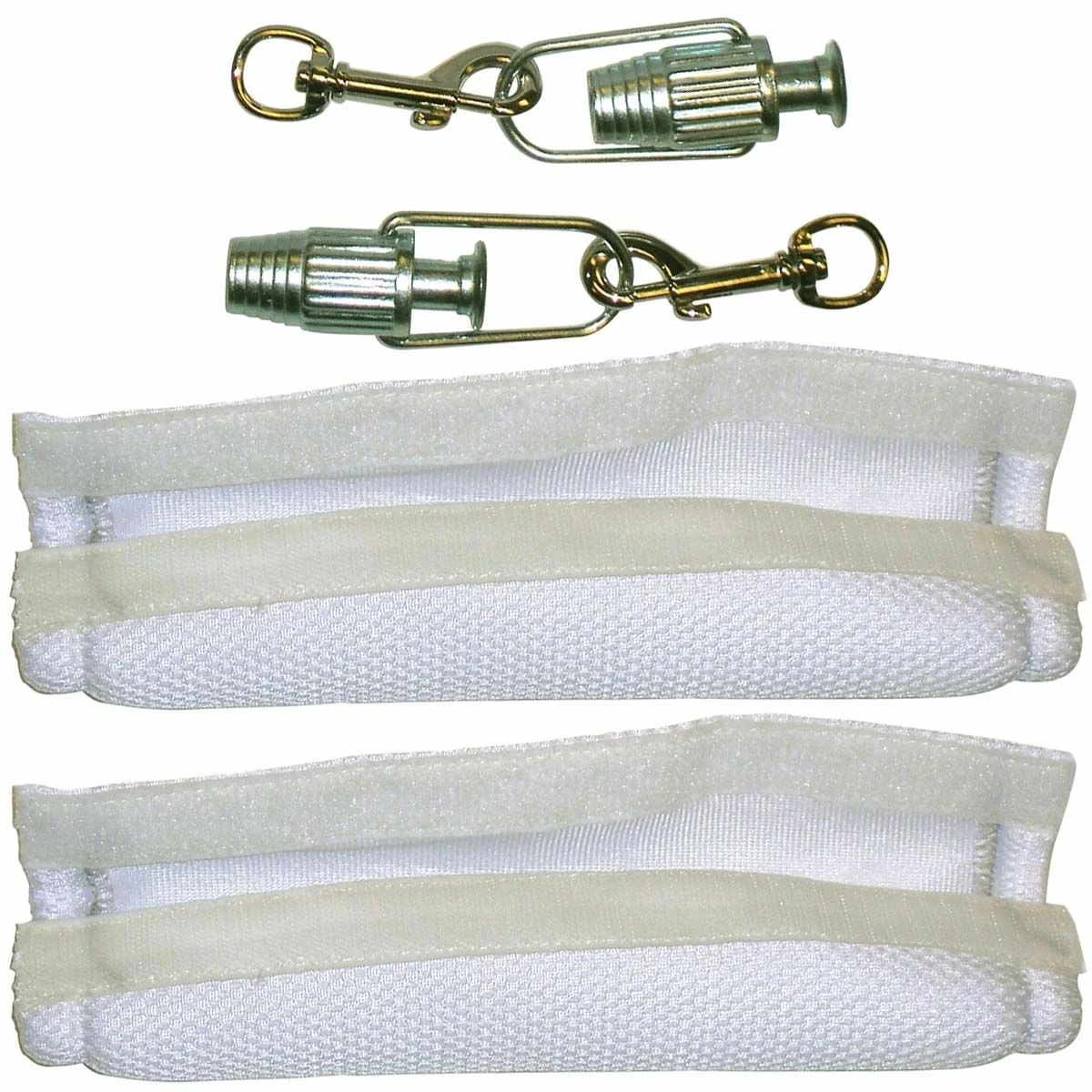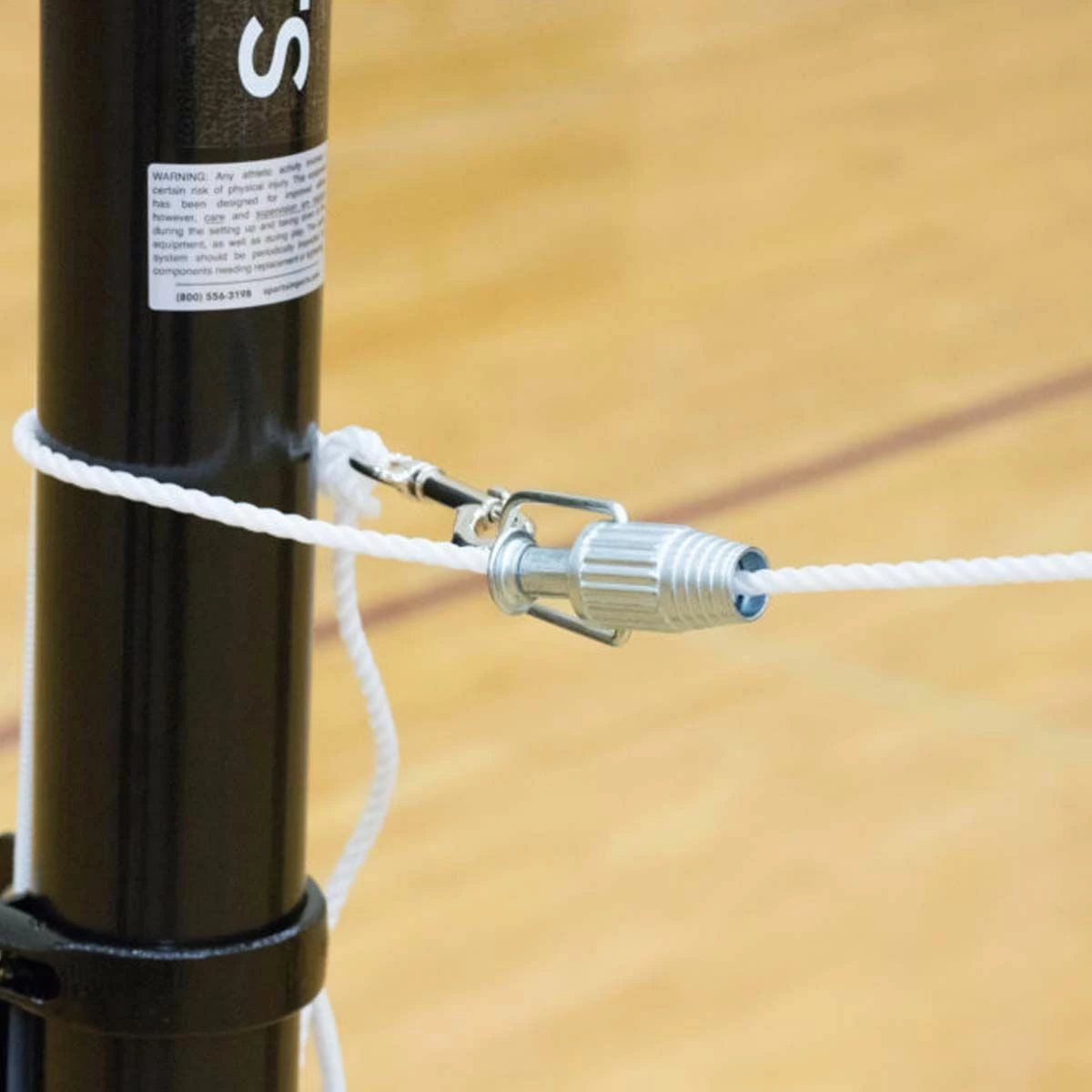 The covered volleyball net tightener by Tandem features an easy to use locking device that attaches to the bottom rope for quick adjustments of your volleyball net. Sold in pairs, these tighteners hold and apply tension to the bottom of the net, improving net play and overall performance. The included soft covers feature a Velcro® closure that wraps around each metal tightener for player safety.