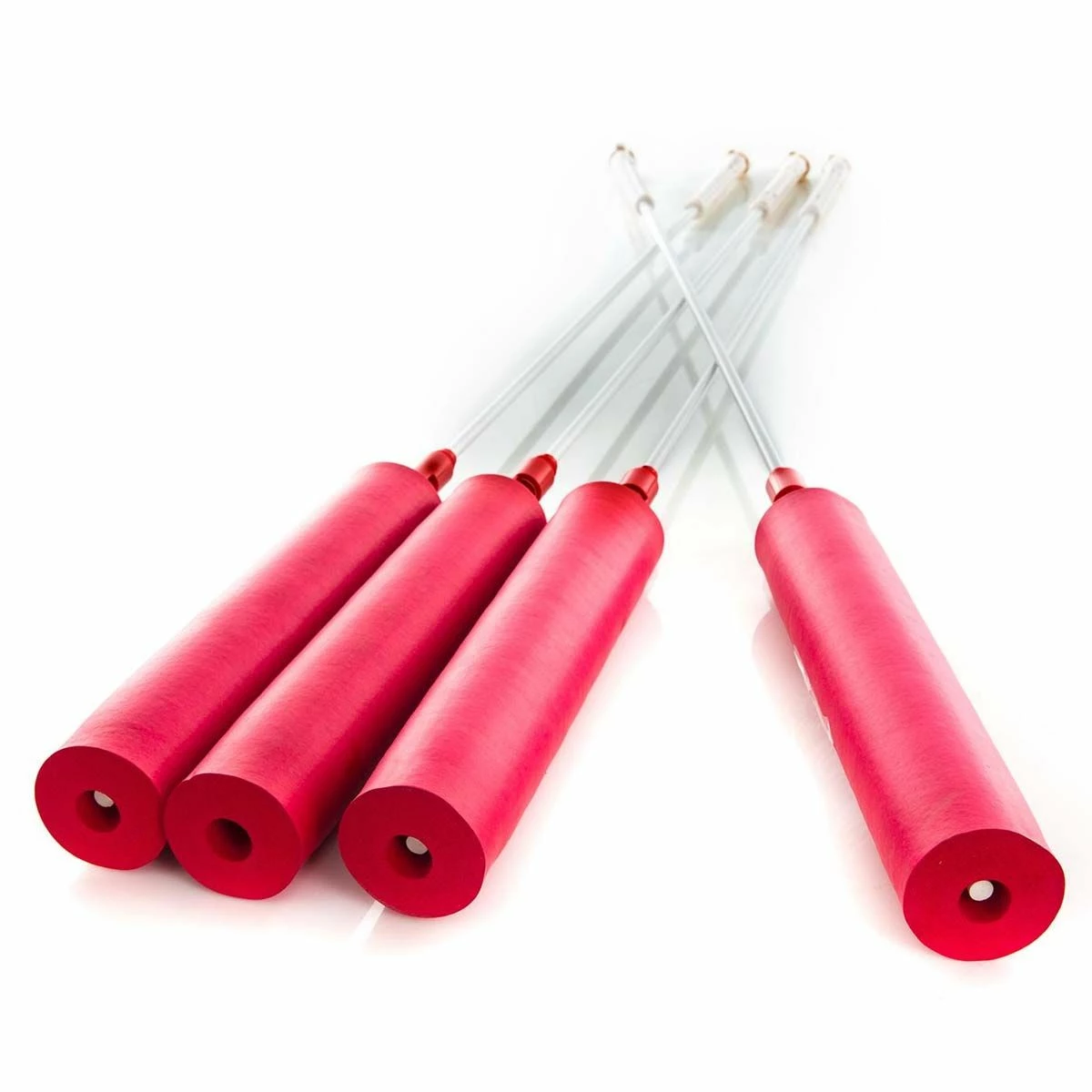 The Tandem Volleyball Quad Blocker Spike Trainer consists of 4 separate foam blocking units that secure to the volleyball net for a controlled block. Use the Quad Blocker for hitting placement drills or as a coverage tool in blocking drills. Place the 4 units anywhere on the net for a versatile and effective training tool.